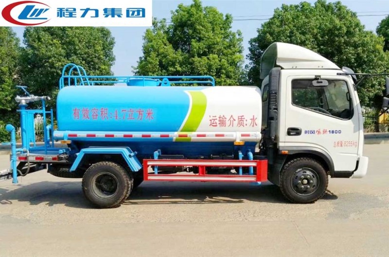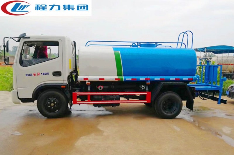 罐體有效容積5立方,罐體采用國標Q235碳鋼,罐體厚度4mm,自吸自排水泵,帶前沖裝置,后灑裝置,左右側(cè)噴裝置,尾部帶有安全操作平臺,帶消 防接口,自流口,兩根輸水管,尾部綠化高炮,綠化高炮可調(diào)節(jié)直沖,大雨,中雨,毛毛雨霧,可以連續(xù)調(diào)節(jié),360度旋轉(zhuǎn);
