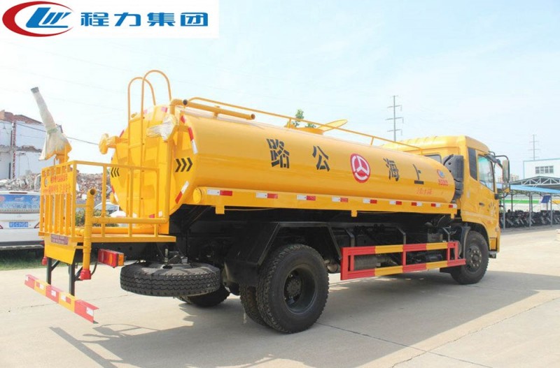 罐體有效容積12-15立方,罐體采用國(guó)標(biāo)Q235碳鋼,罐體厚度4mm,自吸自排水泵,帶前沖裝置,后灑裝置,側(cè)噴裝置,高位花灑裝置,綠化高炮,安全操作平臺(tái)。