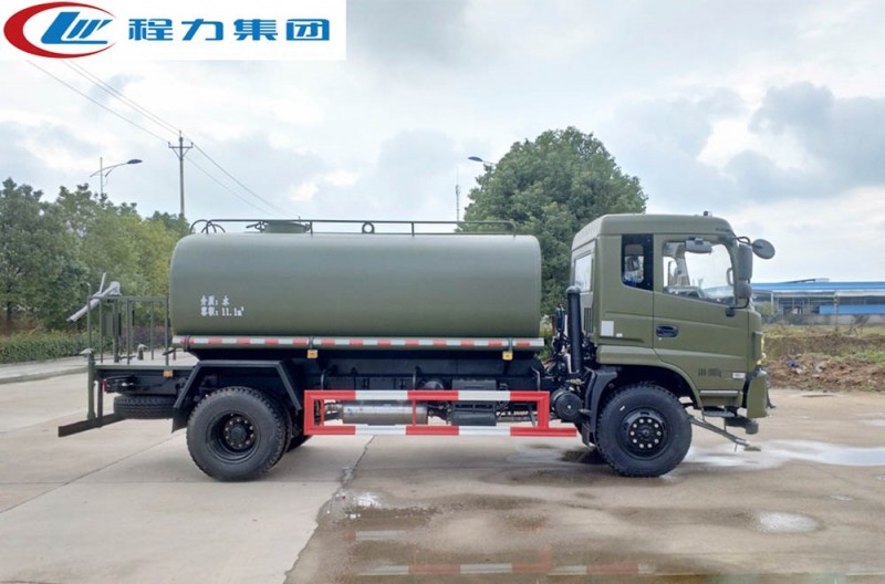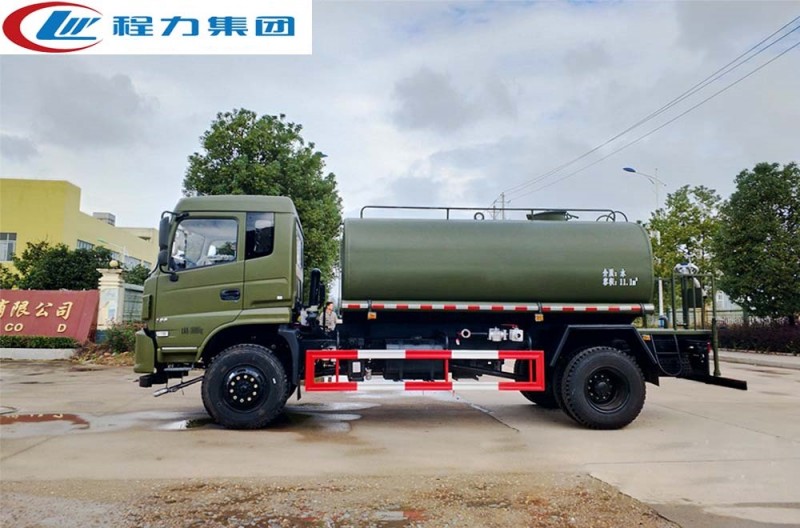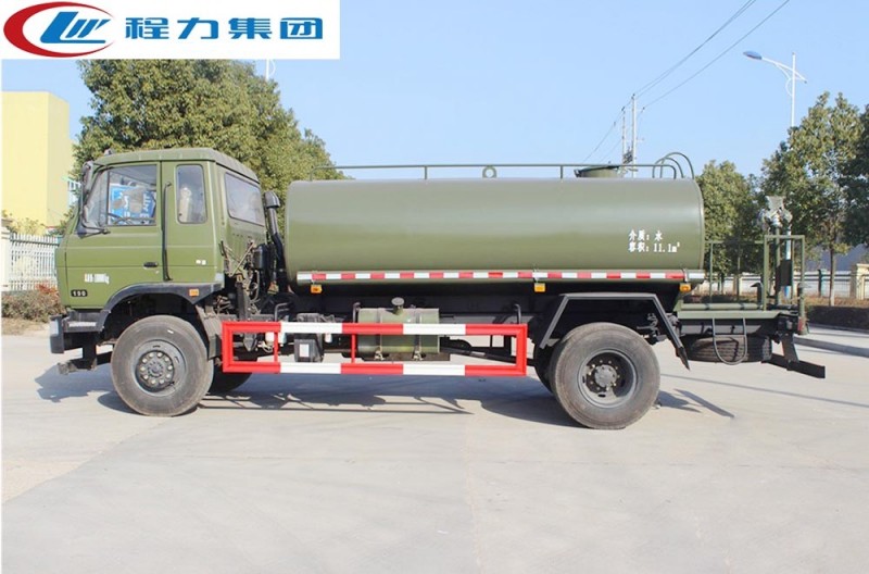 該車可做東風(fēng)四驅(qū)沙漠運(yùn)水車使用,罐裝有效容積13立方,采用優(yōu)質(zhì)碳鋼焊接而成,自動(dòng)流水線罐體生產(chǎn)工藝分為:下料、拼板自動(dòng)焊,封頭旋壓成型,罐體一次滾壓成型等國(guó)內(nèi)先進(jìn)生產(chǎn)工藝。帶前沖(噴)、后灑、后工作平臺(tái),平臺(tái)上有高壓水炮(炮可360全方位旋轉(zhuǎn),可連續(xù)調(diào)節(jié)為柱狀、開(kāi)花狀、雨?duì)?、半霧狀水流),配備大功率專用灑水泵,帶2根透明鋼絲抽水管,泵可自吸自排,帶過(guò)濾網(wǎng),可從野外河流里抽水;帶消防接口,可從城市消防栓處取水;帶自流閥,可自然排水或者采用水泵進(jìn)行加速排水。 東風(fēng)四驅(qū)消防灑水車在設(shè)計(jì)上內(nèi)置消防泵夾心取力器,泵倉(cāng)位于罐體前部,隱藏設(shè)計(jì),有倉(cāng)門(mén),有效容積為8.0立方,配專用大功率消防灑水車炮,最大射程30m