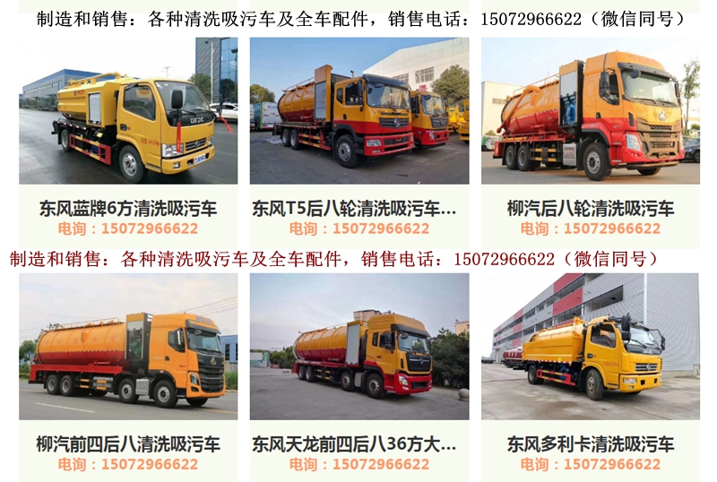 清洗吸污車導(dǎo)購(gòu):東風(fēng)多利卡清洗吸污車(10方),東風(fēng)天錦清洗吸污車(15方),江淮清洗吸污車,東風(fēng)天龍雙橋清洗吸污車,東風(fēng)天龍前四后八清洗吸污車。