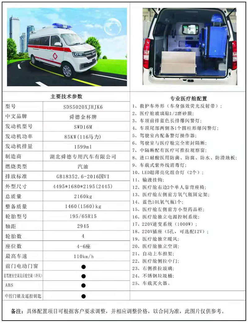 救護車,也叫醫(yī)療車,120急救車等,是救助、轉(zhuǎn)運患者的專業(yè)車輛。公司專業(yè)制造和銷售各類救護車,產(chǎn)品主要有:江鈴救護車,大通救護車,福田救護車,依維柯救護車,金杯救護車,江淮救護車等,以及傷殘轉(zhuǎn)運車等系列。聯(lián)系電話:19078930049(微信同號)