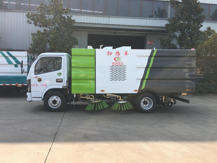 ???? 該掃路車采用東風(fēng)多利卡型國(guó)六二類底盤改裝,加裝副發(fā)動(dòng)機(jī)、風(fēng)機(jī)、清水箱、垃圾箱、左右立掃、后置吸盤,掃盤降塵系統(tǒng),液壓系統(tǒng)、專用裝置電控系統(tǒng)和副車架等改裝而成。