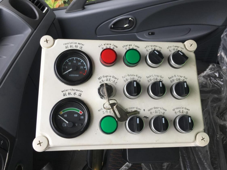 9、駕駛室手動(dòng)按鈕式液壓系統(tǒng)驅(qū)動(dòng)左右立掃升降、左右掃盤旋轉(zhuǎn)、吸嘴升降、垃圾箱后門開閉、垃圾箱傾翻復(fù)位等機(jī)械動(dòng)作。