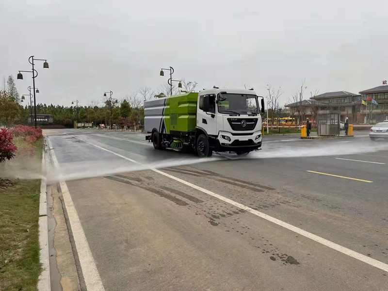 東風(fēng)天錦洗掃車,采用囯六二類汽車底盤,軸距5000mm配備康明斯210馬力發(fā)動機(jī),10.00R20鋼絲胎,豪華帶臥駕駛室,駕駛室?guī)胺?,方向助力,低油耗,上裝康明斯170馬力副發(fā)動機(jī),廈門南超高品質(zhì)自動離合器。海德瑞沃電磁閥組,德國品孚高壓水泵,耐磨液壓油缸,西門子電控開關(guān),左右,后噴霧壓塵系統(tǒng),前置兩掃盤,中置吸盤,隨車配備高壓沖冼功能,垃圾箱自潔功能,垃圾箱防溢滿報警裝置。