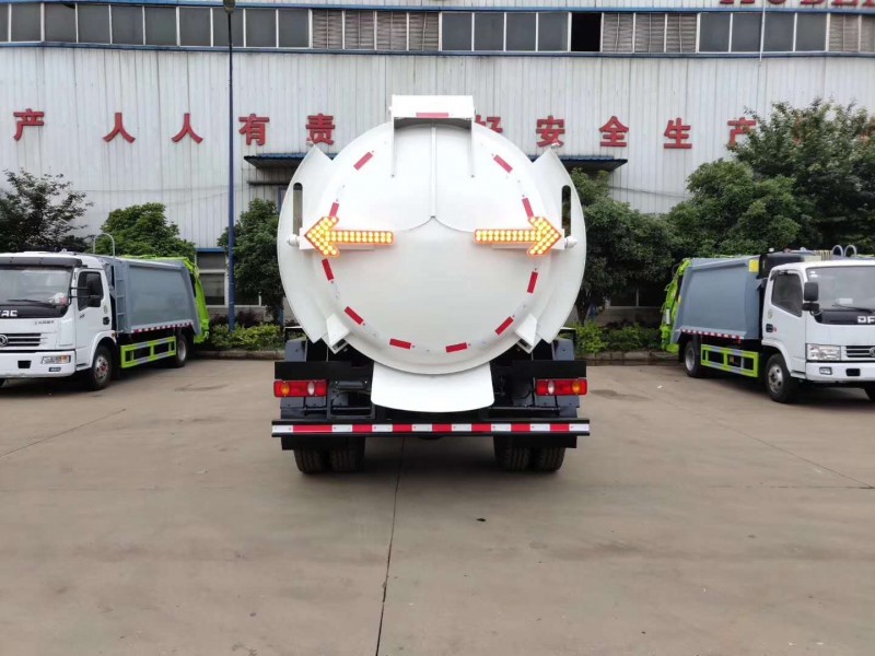 東風天錦餐廚垃圾車,搭配康明斯180馬力國五發動機,東風六檔箱,9.00R20鋼絲胎,軸距4500mm,原廠空調,正規東風GB7258-2017新規底盤;上裝采用Q345高強度錳鋼板或304不銹鋼罐體制作,罐體容積:10立方米,大流量液壓泵,大流量手自一體多路換向閥,可編程PLC電控系統帶無線遙控器操作,污水廂,帶壓縮擠壓功能,帶清洗泵自潔系統,后蓋液壓開啟,后蓋帶液壓鎖緊并具有防誤操作。