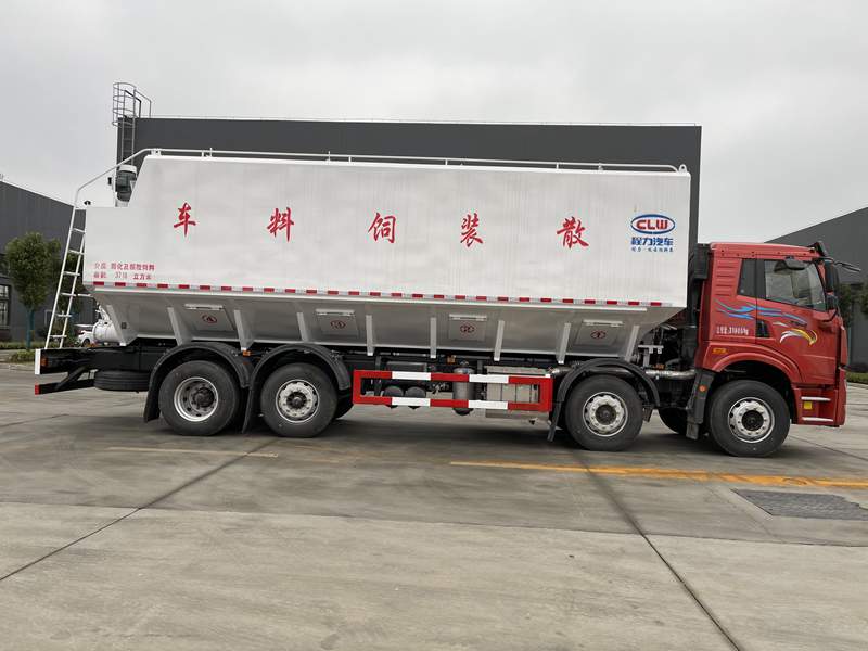 罐體材質(zhì)采用優(yōu)質(zhì)輕型鋼板,整車3條絞龍,由3個5.5KW電機帶動,頂部絞龍用液壓控制舉升,可左右旋轉180°。可根據(jù)用戶要求做多個獨立分倉,可以獨立控制各分倉卸料順序和速度。